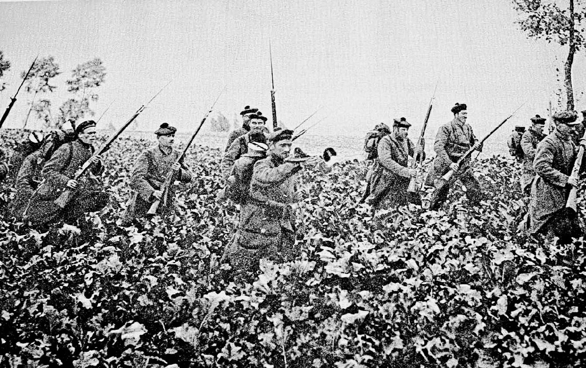 Soldaten van de halve brigade der vlootmariniers, tijdens de Slag bij Diksmuide in 1914.© Wikipedia Commons