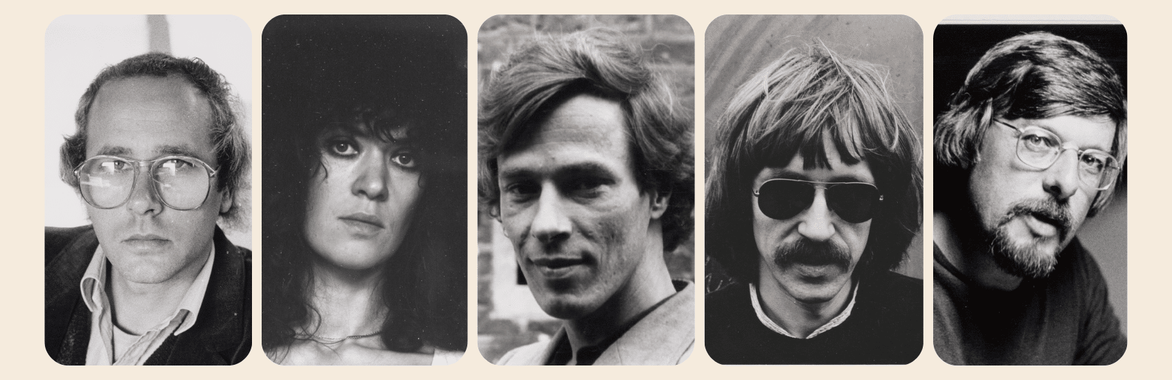 Rudolf Geel, Mensje van Keulen, Anton Korteweg, Ad Zuiderent en Jan Siebelink © Jan Steveman en Steve Raviez / Literatuurmuseum