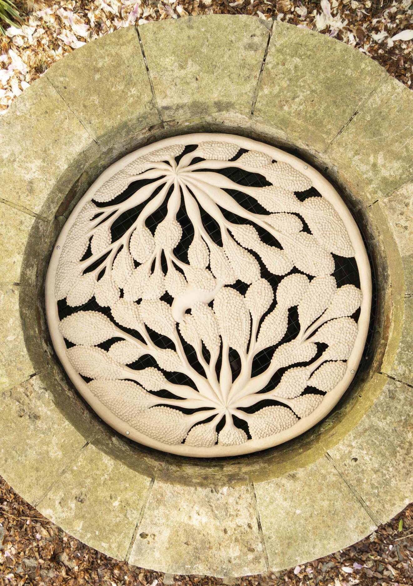 Dat laatste was het geval voor Clara Spilliaert, die in gesprek ging met een cardioloog over het thema Medicine for all. Ze vroeg zich af wat het gevolg is van het feit dat geneeskunde lang gebaseerd is op witte mannen. In haar werk Listen Well bekritiseert ze die eenzijdige blik en het gebrek aan kennis over het vrouwelijke hart. Nog steeds worden hart- en vaatziekten bij vrouwen namelijk te laat ontdekt omdat er minder onderzoek naar vrouwen gedaan wordt en hun symptomen anders zijn. De installatie bestaat uit bronzen reliëfsculpturen, die geënt zijn op vier waterputten in het Groot Begijnhof. Ze baseerde het rooster op een scan van de vrouwelijke borststreek, maar koppelt die ook aan de meidoorn, een kruid dat goed is voor de bloedsomloop én dat je in het Begijnhof vindt.