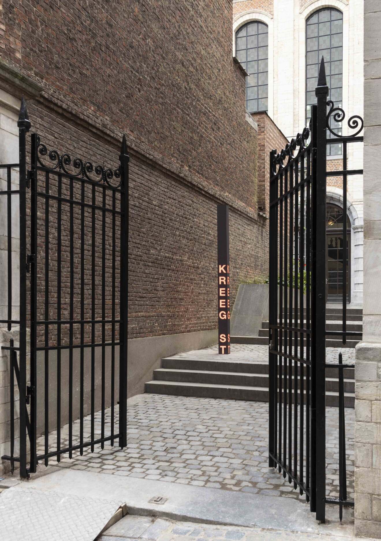 De Groens gedicht verschijnt en verandert in een lichtzuil, waarbij woorden als grondstoffen uit de aarde worden getrokken. Af en toe kunnen voorbijgangers zo een nieuw fragment oppikken. Voor poëziecurator Maud Vanhauwaert was het belangrijk dat de gedichten niet zomaar op de muur zouden plakken, maar een creatieve vorm aannemen. Daarvoor ging ze te rade bij vormgever Jelle Jespers. ‘We wilden de tekst tot leven brengen in een nieuwe context en laten samenwerken met de bestaande architectuur, om de aandacht te vestigen op de omgeving’, zegt ze. ‘Dat is wat poëzie doet: het laat je met nieuwe ogen kijken naar wat er al is.’