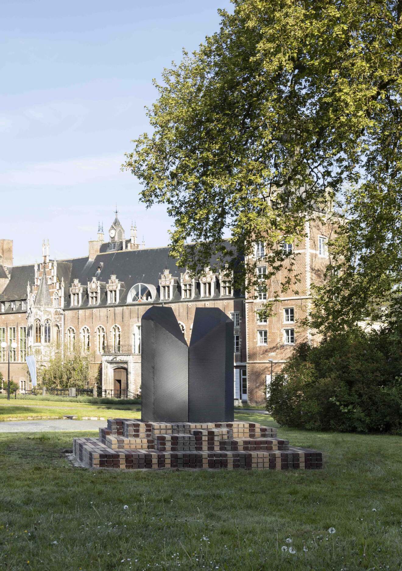 Het project ‘600 jaar KU Leuven’ startte vanuit de vraag: welke rol speelt de universiteit in de maatschappij en welke vorm neemt die aan in de toekomst? ‘Als kennis- en onderwijsinstelling wilden we kunstenaars betrekken omdat zij een knowhow hebben waar we veel van kunnen leren’, vertelt kunst- en cultuurfilosoof en curator Stéphane Symons. ‘Dat begon enkele jaren geleden toen we naar de faculteiten stapten om te kijken waar zij zich momenteel over buigen. Daar hebben we zeven interdisciplinaire thema’s uit gedistilleerd, waarrond we werkgroepen hebben opgezet van wetenschappers en telkens één beeldend kunstenaar en één dichter. Uit elke werkgroep kwam een gedicht en een sculptuur voort, die dus voor én samen met de universiteit gemaakt zijn.’