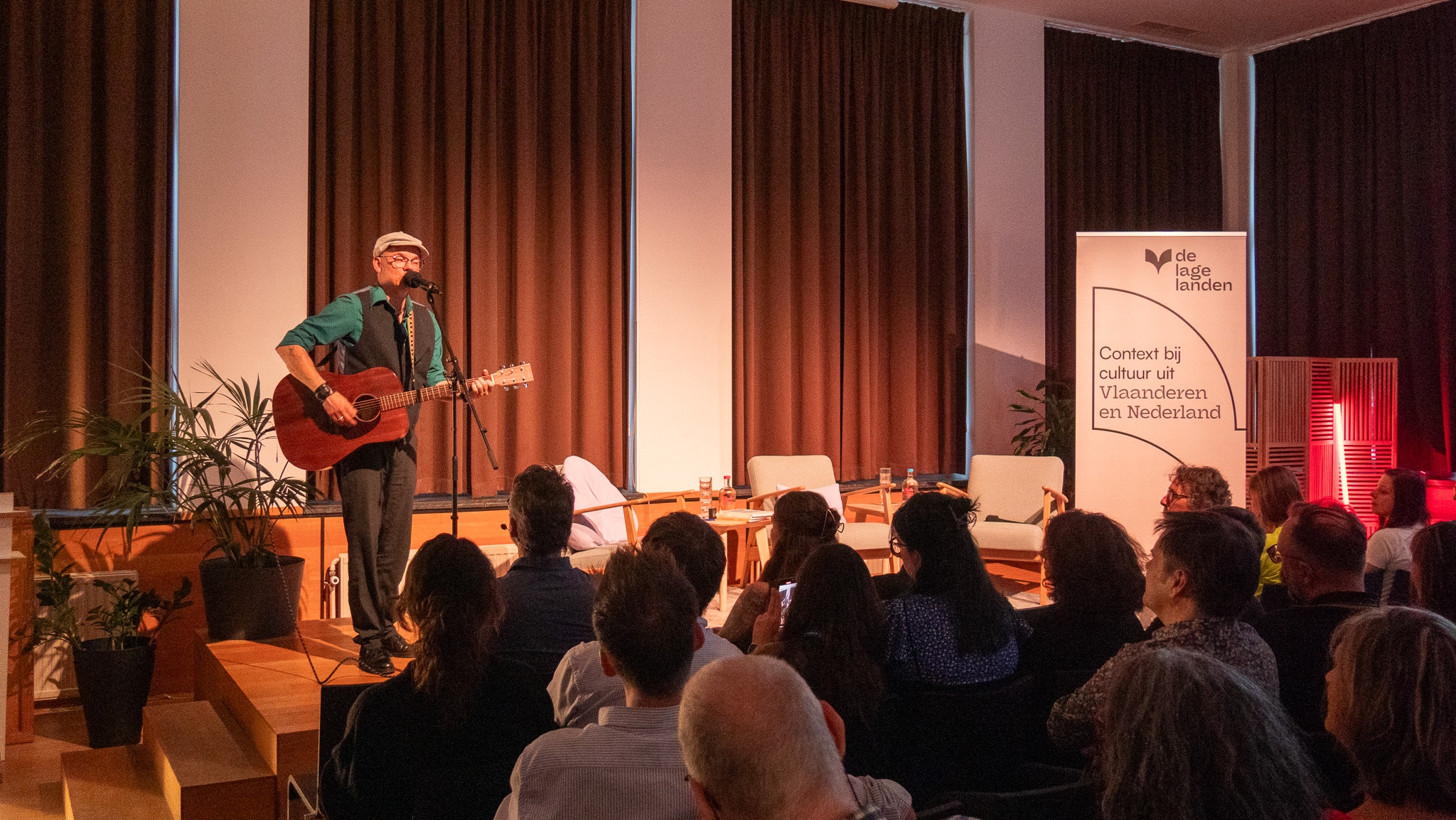 Hedendaags troubadour Harold K zong tussendoor nummers in het Zösters (Nederlands-Limburgs dialect). Tom Christiaens, hoofdredacteur van de lage landen, modereerde de gesprekken.