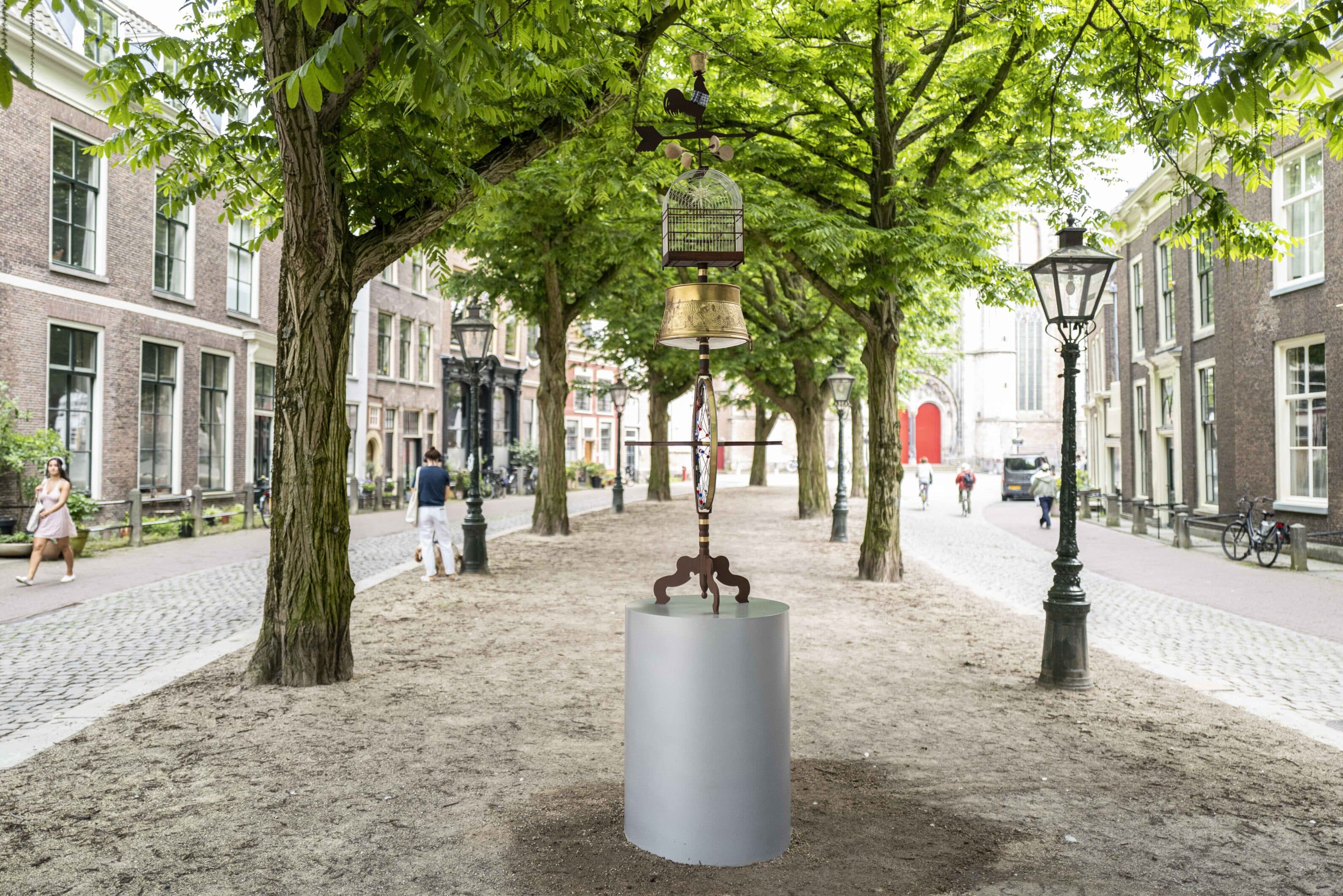 Of je een begeleidende tekst nodig hebt bij Grontapu na asitere hangt overigens sterk af van je culturele referentiekader. In het vogelkooitje zie je bijvoorbeeld een ster hangen: als je van Afro-Surinaamse afkomst bent of die cultuur kent, weet je dat die afkomstig is van de Duitse Evangelische Broedergemeente, een van de grootste christelijke stromingen in Suriname. Grontapu na asitere verwijst verder naar de haan: een symbool van trots in zware tijden. En wat met dat wiel in de sculptuur? Het beeld blijkt bovenal te zijn geïnspireerd door Sophie Redmond (1907-1955), de eerste zwarte, vrouwelijke arts in het Nederlandse koninkrijk, waar Suriname van 1667 tot 1954 deel van uitmaakte. En Redmond stond bekend als de fietsende dokter.