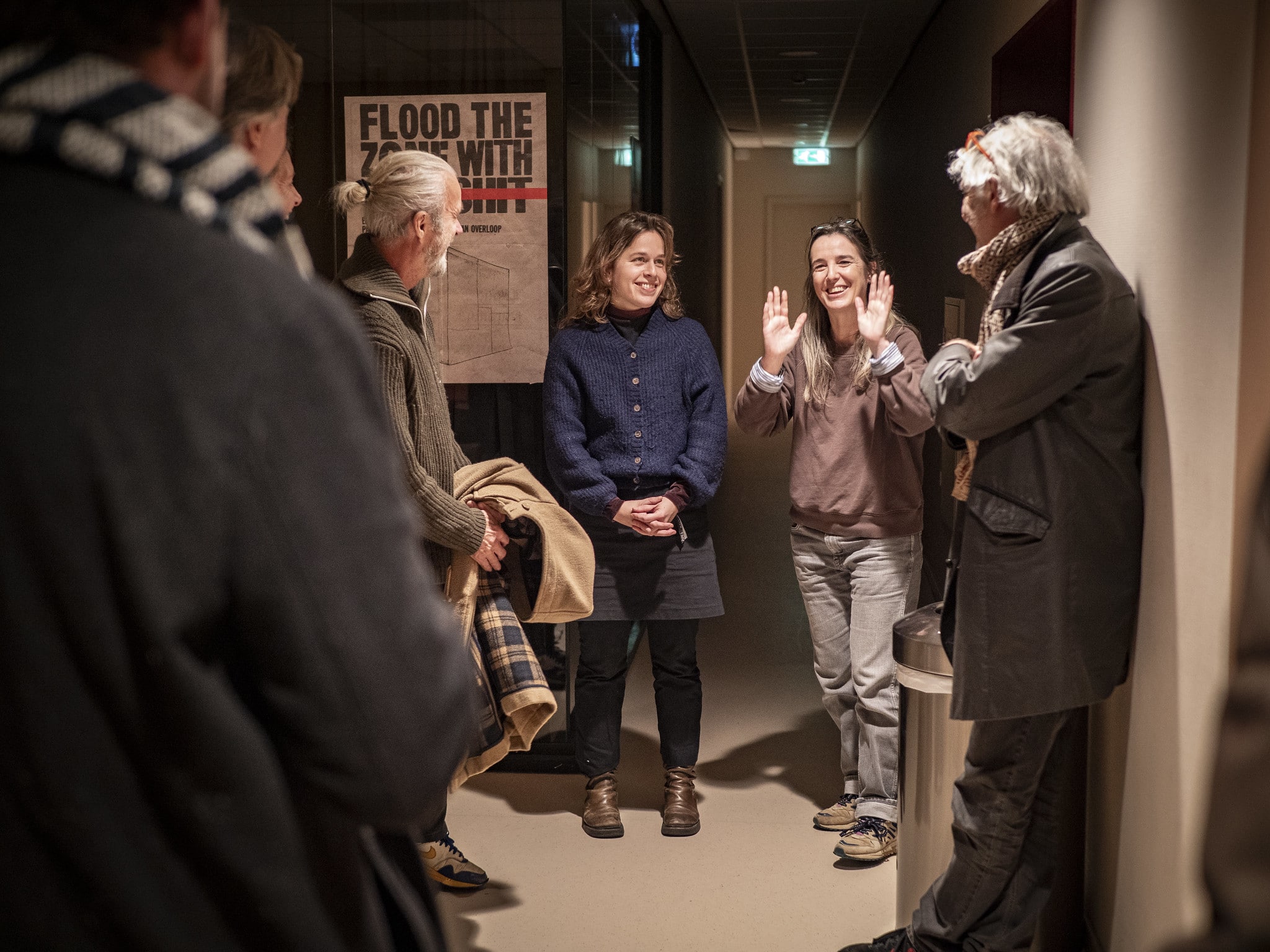 Flood the Zone with Shit verwijst naar de strategie van de extreemrechtse Steve Bannon om de publieke opinie te bespelen met een overvloed aan informatie. Makers Pauline Augustyn en Veerle Van Overloop dachten na over wat er kan ontstaan in zo’n ruimte als we ze niet laten overspoelen met shit: “We hadden allebei het gevoel dat het veel is. Er komt veel hard binnen, onder andere door sociale media.”
