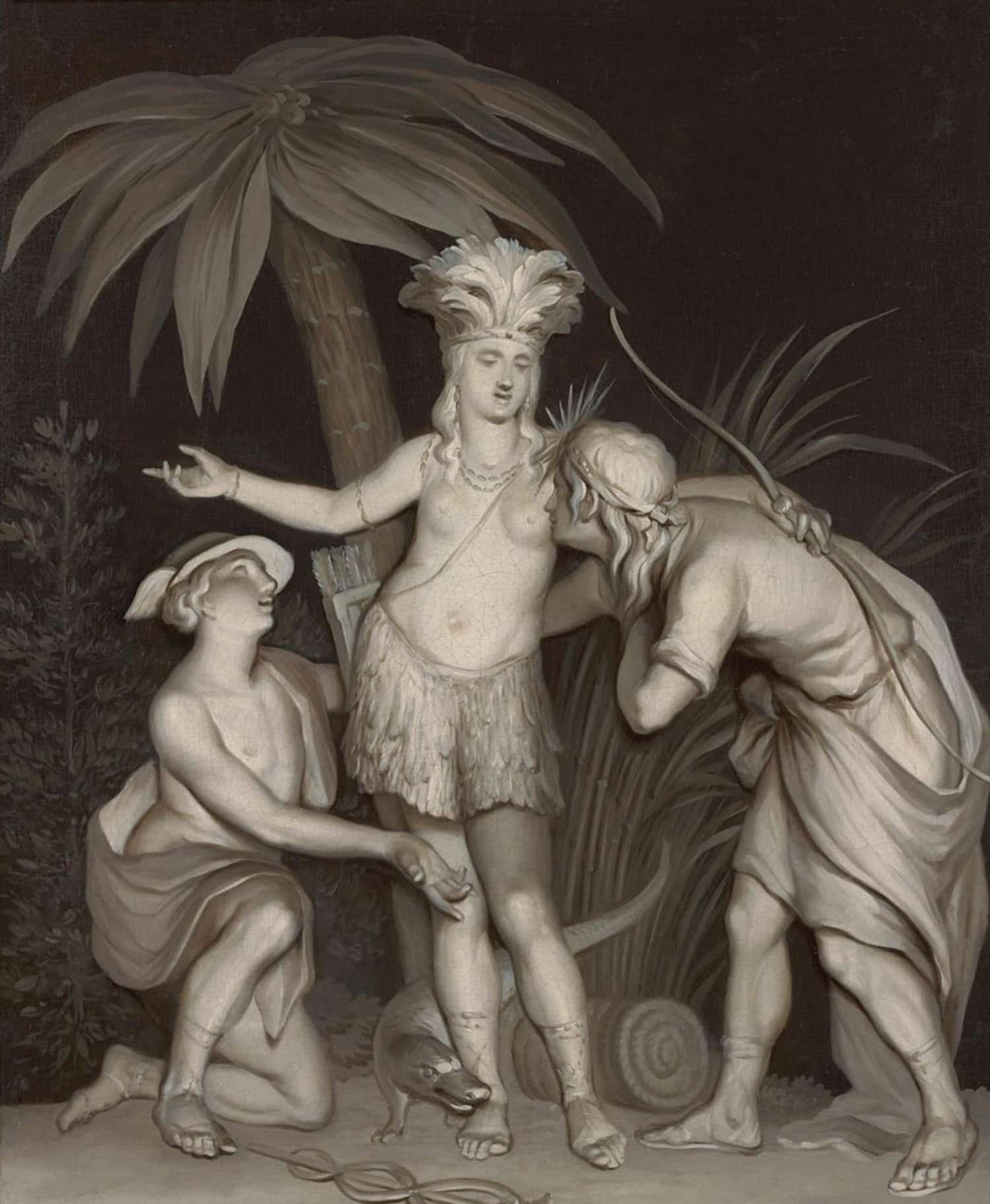 Rond 1790 schilderde Jurriaan Andriessen deze allegorie op de onderhandelingen tussen de Republiek en de Verenigde Staten© Amsterdam Museum