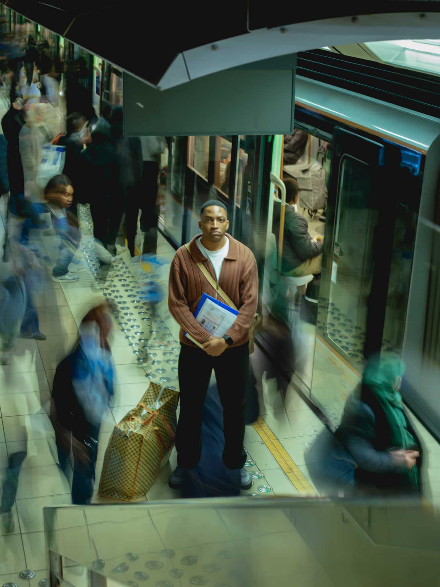 Daarvoor moet hij ook zijn thuis loslaten. Dat gebeurt letterlijk: die verdomde brokkelige WhatsApp-verbinding toch. Met mama of broer in gesprek gaan lukt nauwelijks. Daardoor sluipt er in de wachtruimte nog meer onzekerheid binnen. Alsof die er nog niet genoeg was. Er is voor hem geen andere keuze dan het zelf waar te maken. Wie zich daarbij krampachtig blijft vastklampen aan oude identiteiten, maakt van zichzelf een eiland. Tshimundu ziet het gebeuren bij de Congolezen die in België zijn geboren, en met wie hij zich niet identificeert. Zij lijken vast te houden aan een imaginair, gestereotypeerd verleden van Congo. Nee, Tshimundu komt niet altijd te laat. En zijn favoriete muziek komt uit West-Afrika.