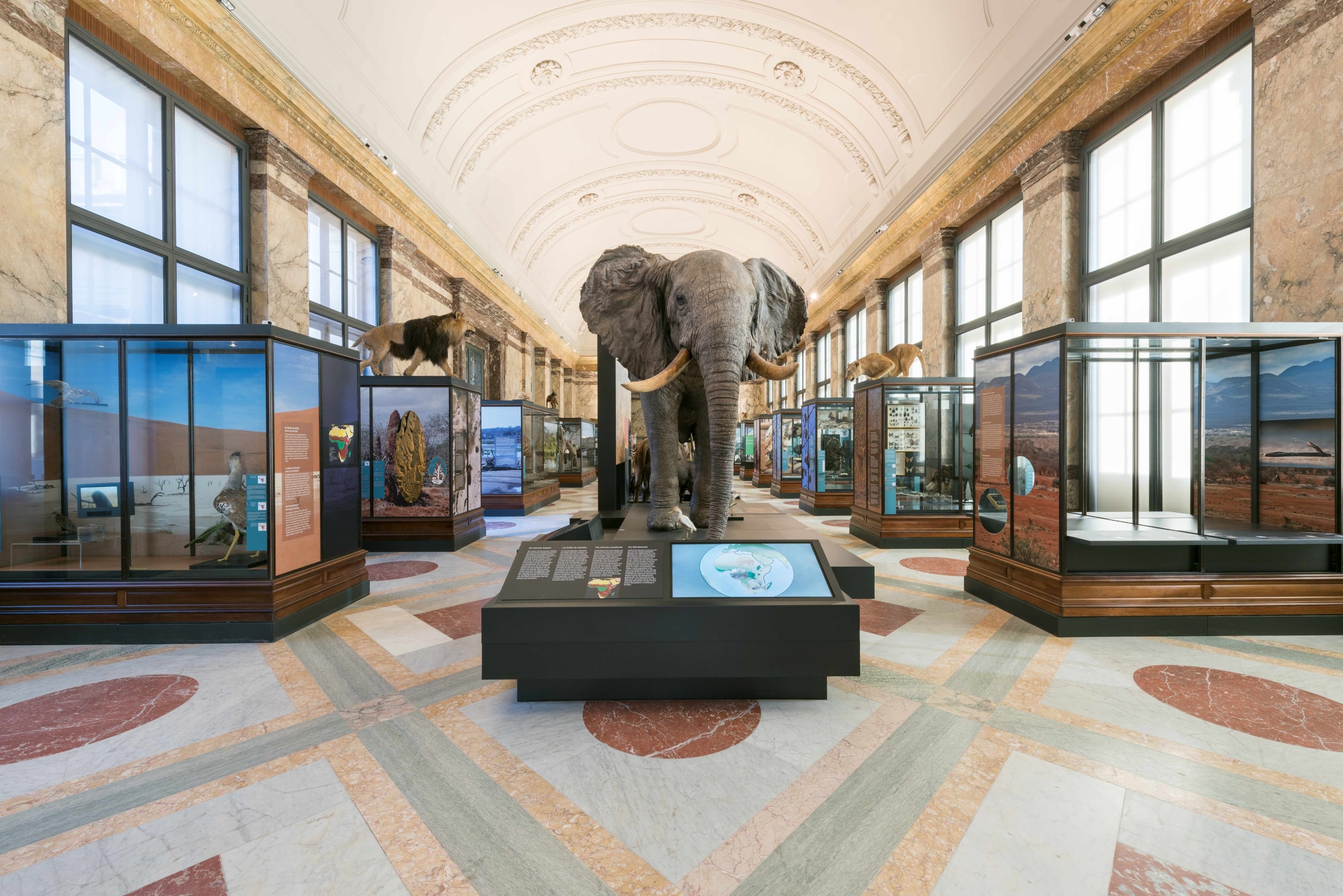 Een van de meest groteske “objecten” in de spreekwoordelijke porceleinkast die Tervuren is, is de opgezette olifant die, op een verhoging geplaatst, imposant boven de bezoeker uittorent. Nsayi: “Deze olifant is speciaal voor de wereldtentoonstelling van Brussel in 1958 op bestelling doodgeschoten.” Daarnaast zijn er nog veel meer grote, opgezette dieren te zien: de stilte die ze omringt is beklemmend. Er zijn zebra’s, buffels, apen, een complete familie okapi’s. Nsayi: “Zo stelt het museum jachttrofeeën tentoon met als argument dat dat interessant is voor kinderen: een leuk uitje voor de hele familie. Maar waar luisteren we naar Afrikanen? Ook deze schending van de Afrikaanse natuur en biodiversiteit zit verstopt in het herkomstparcours dat je eerst moet scannen. Terwijl het museum daar zelf een actieve rol in speelde.”