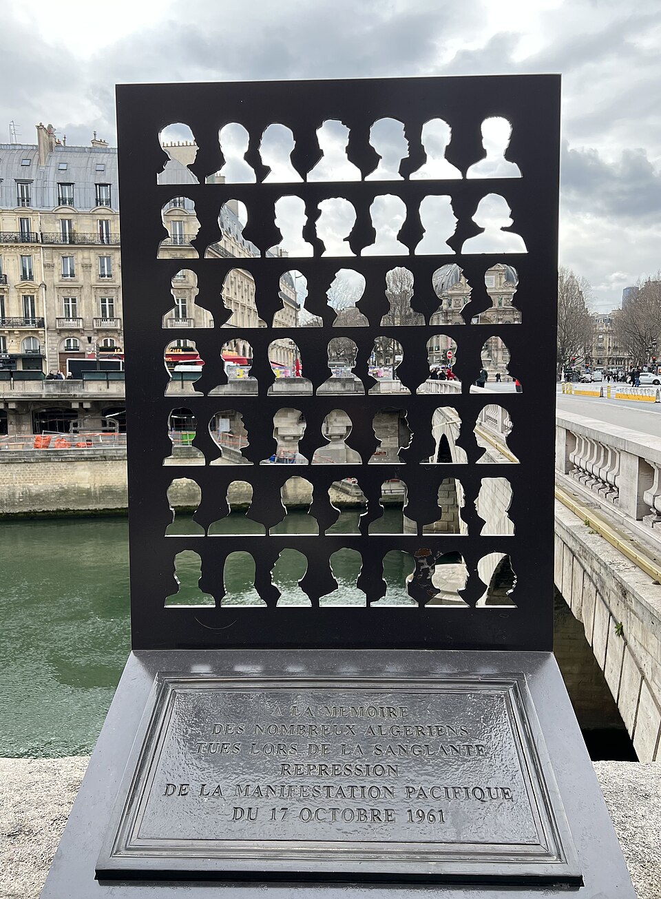 Monument aan de Pont Saint-Michel in Parijs ter herdenking van de Algerijnen die in 1961 in de Seine werden verdronken© Wikimedia Commons