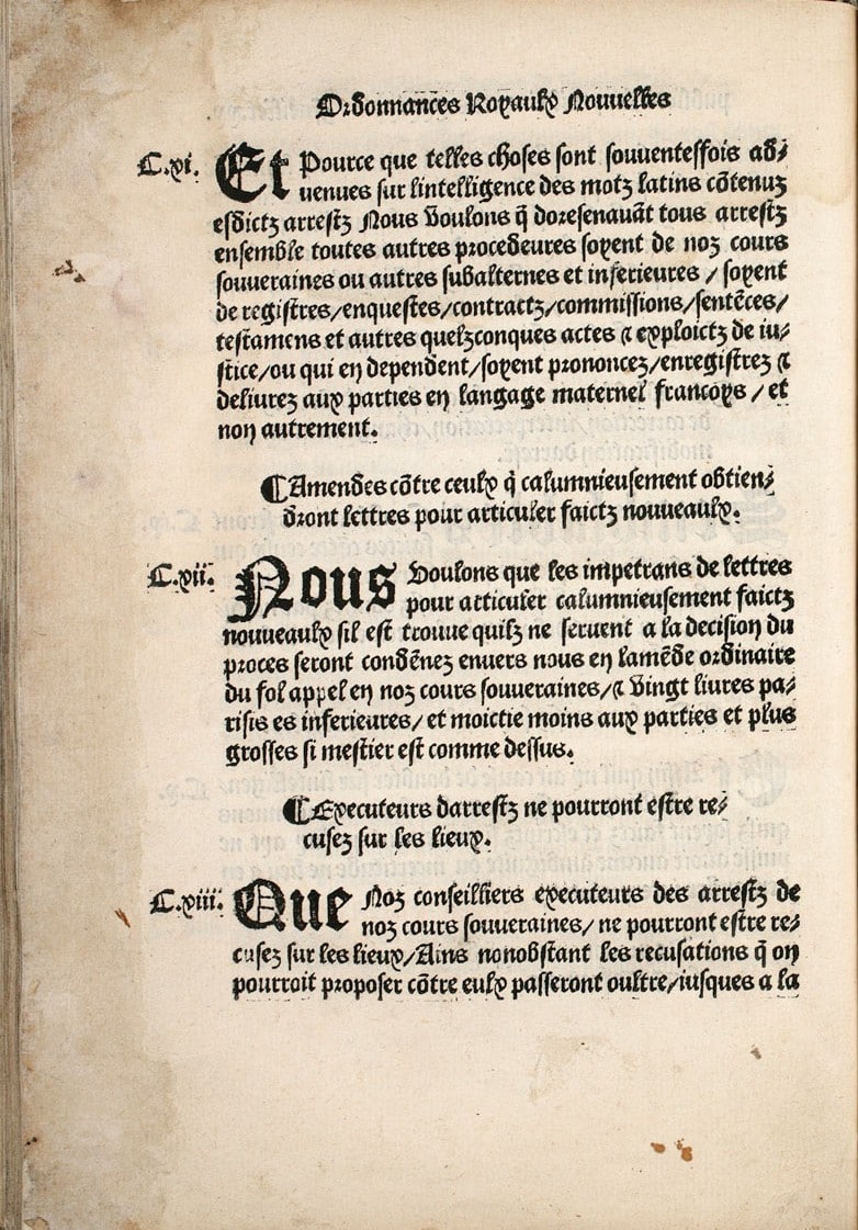 De Verordening van Villers-Cotterêts was in tegenstelling tot wat vaak wordt gedacht veel meer een maatregel tegen het Latijn, de exclusieve taal van recht en administratie, dan voor het Frans.© Archives nationales de France / publiek domein